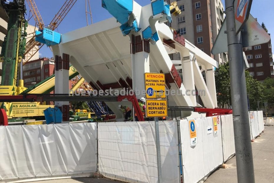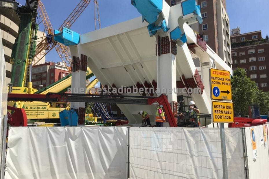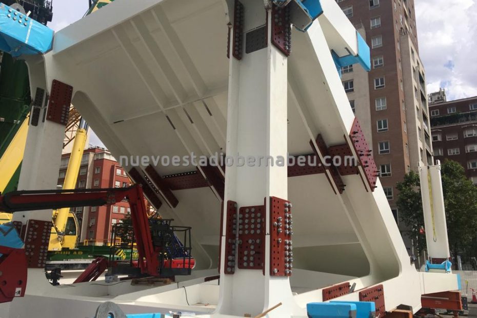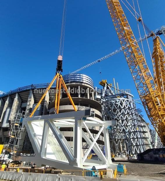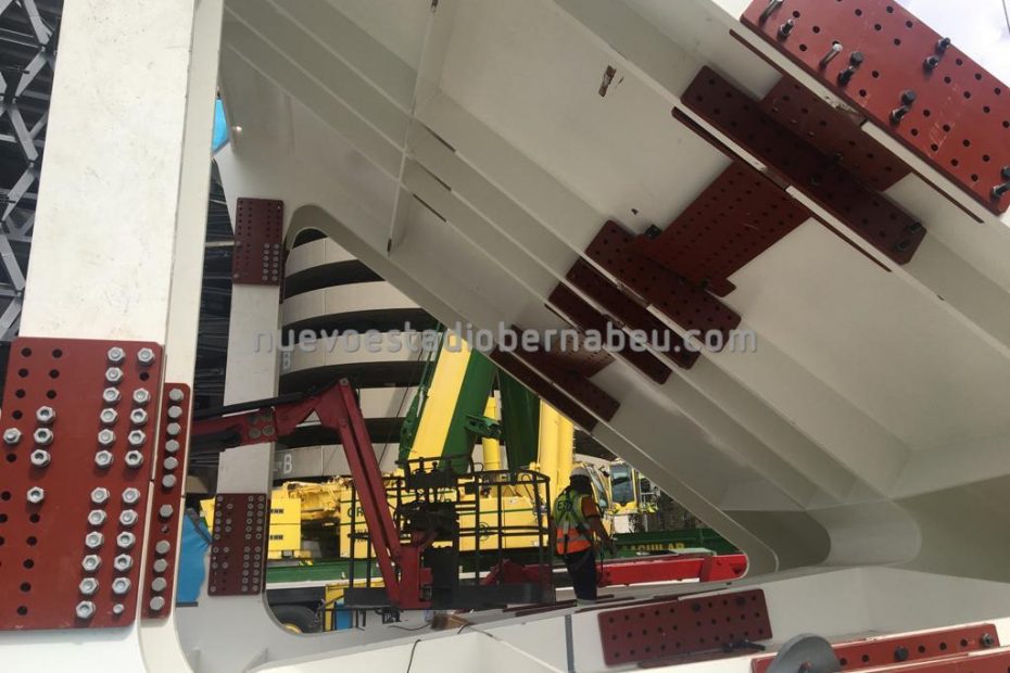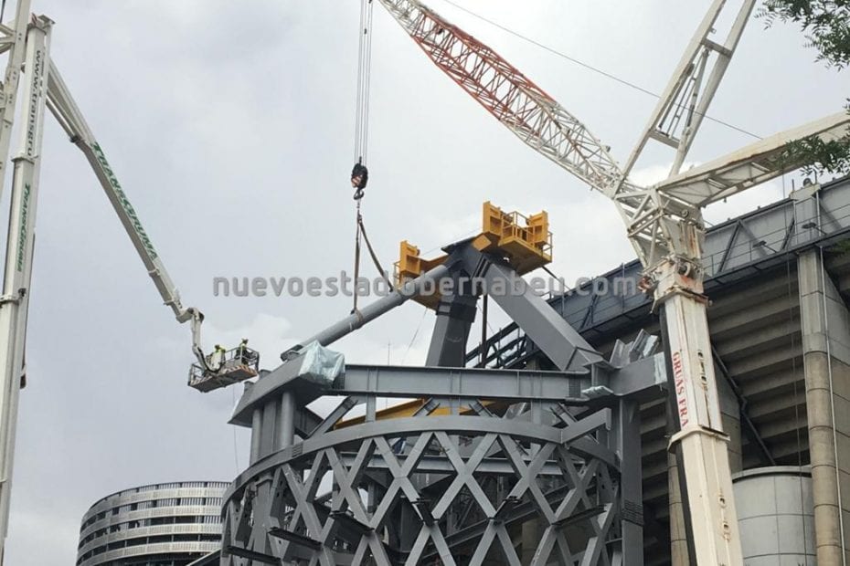 Hoy puede ser un día grandioso: primera gran pieza estructural de la cubierta colocada!!….y posible llegada de la 34!!!….Hala Madrid!!!.