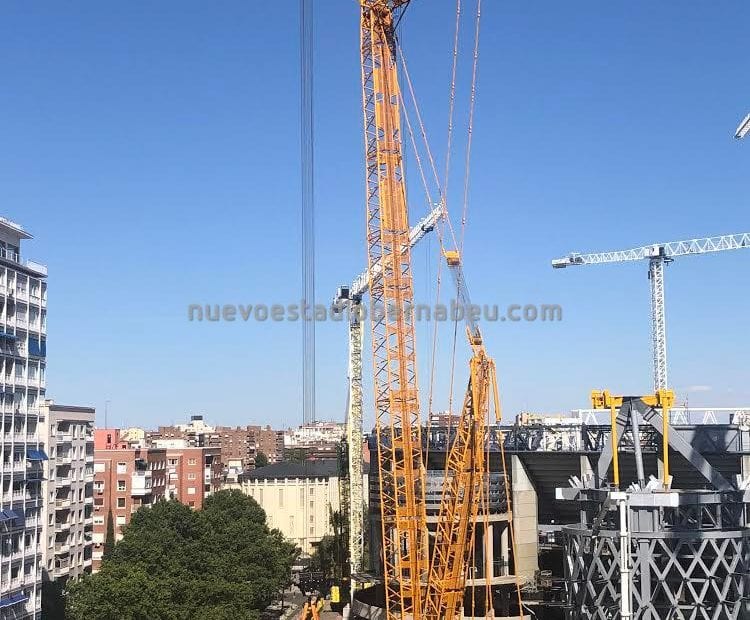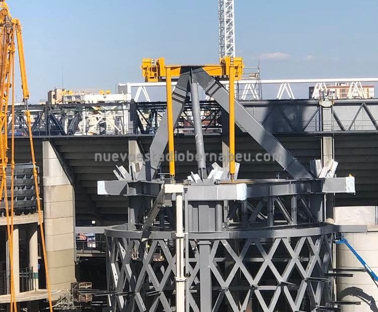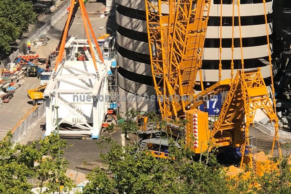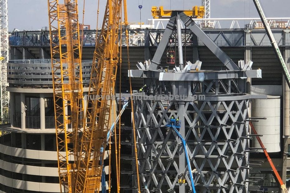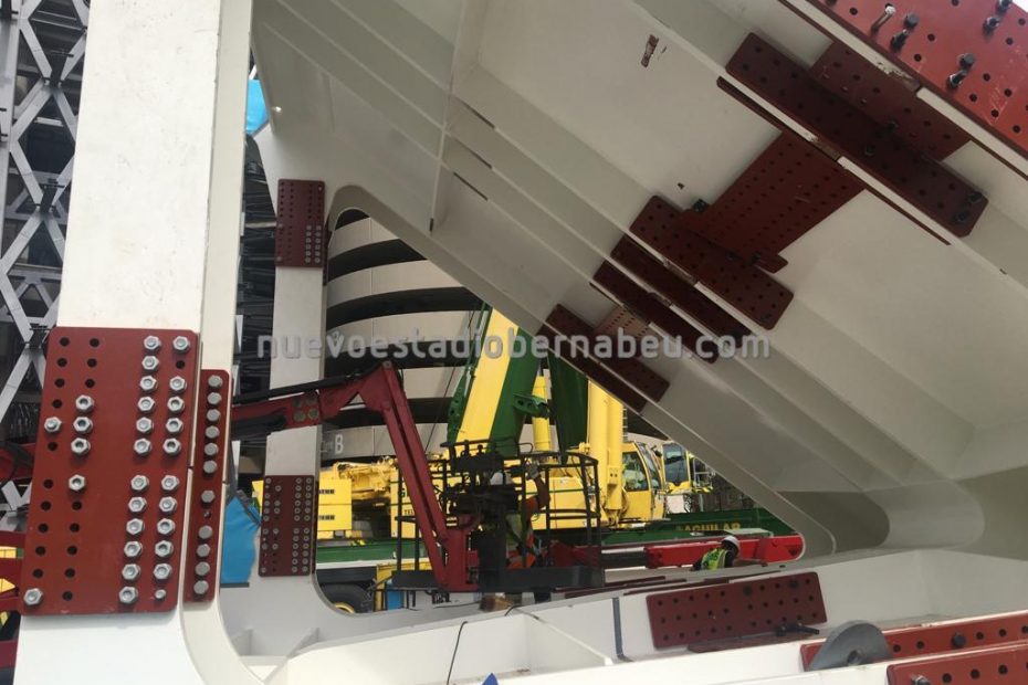En los últimos días se amontona el trabajo en las obras del Bernabéu con un ritmo incesante de trabajos que están centrados en la preparación del izado de la cercha norte.